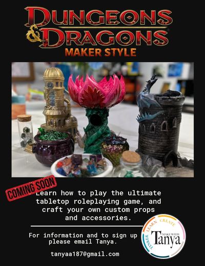 Join our Dungeons & Dragons class for kids and not only learn how to play the ultimate tabletop roleplaying game, but also craft your own custom props and accessories.